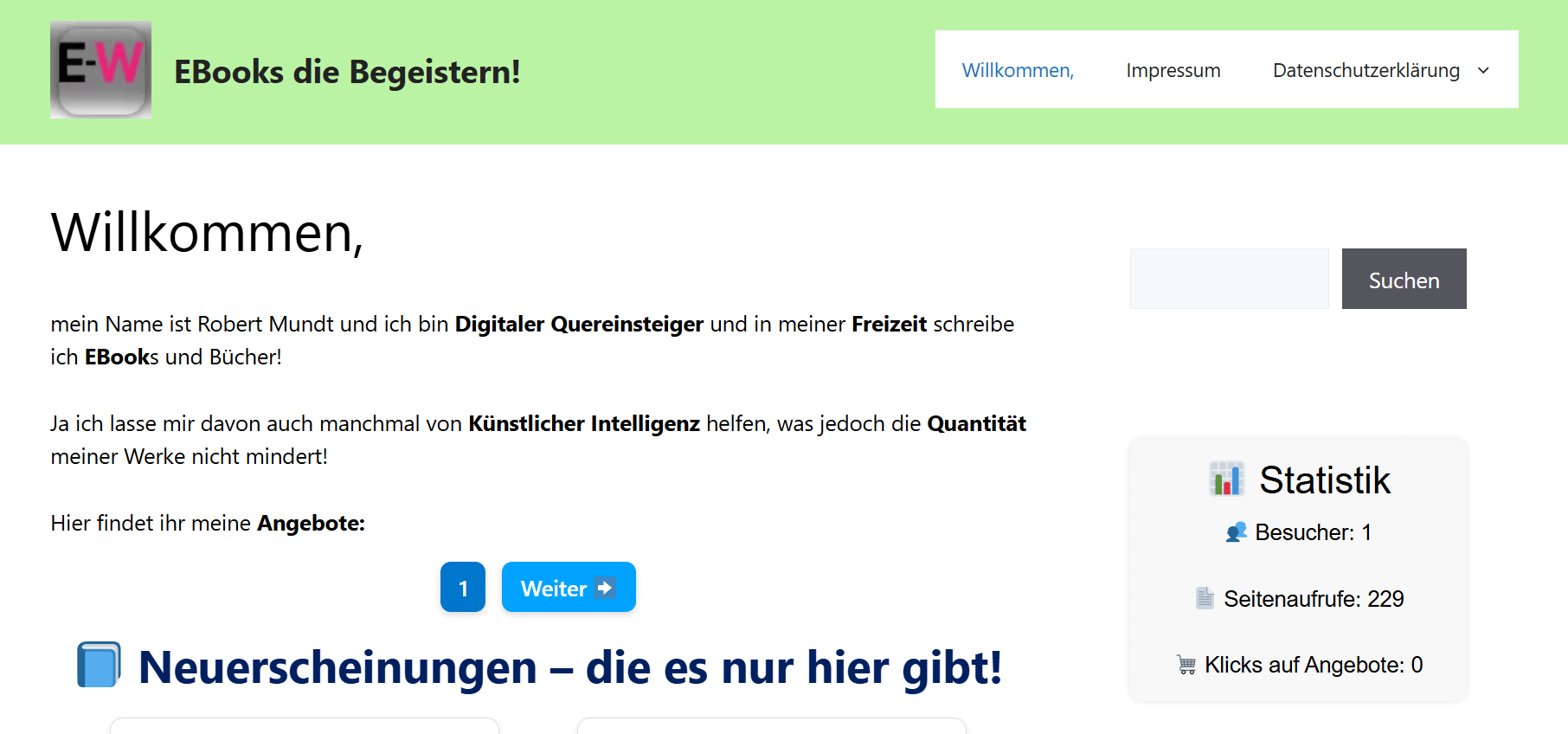 Tags: Ebookwelten, Bücher, Ebooks, digitaler Quereinsteiger, Geschichtenerzählen, Künstliche Intelligenz, Veröffentlichungen, Leseabenteuer. begeisternde, passionierter, tiefster Leidenschaft, inspirieren, Qualität und Vielfalt, einzigartigen Angebote.